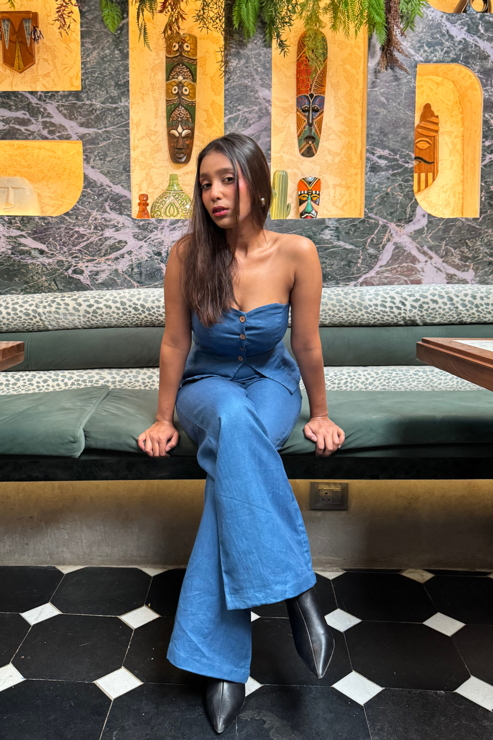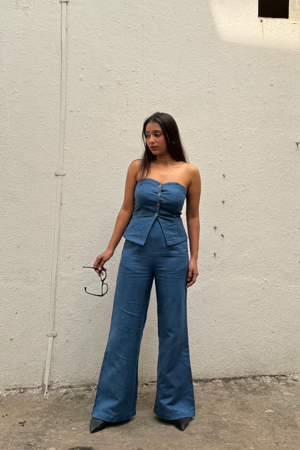 Inspired by classic corsetry, the Blue Candy Top features a delicate sweetheart neckline and off-shoulder silhouette for a soft yet bold look. Handcrafted by local artisans, it’s made from a breathable hemp-cotton twill with a pure cotton lining, giving you comfort, structure, and conscious style in one.