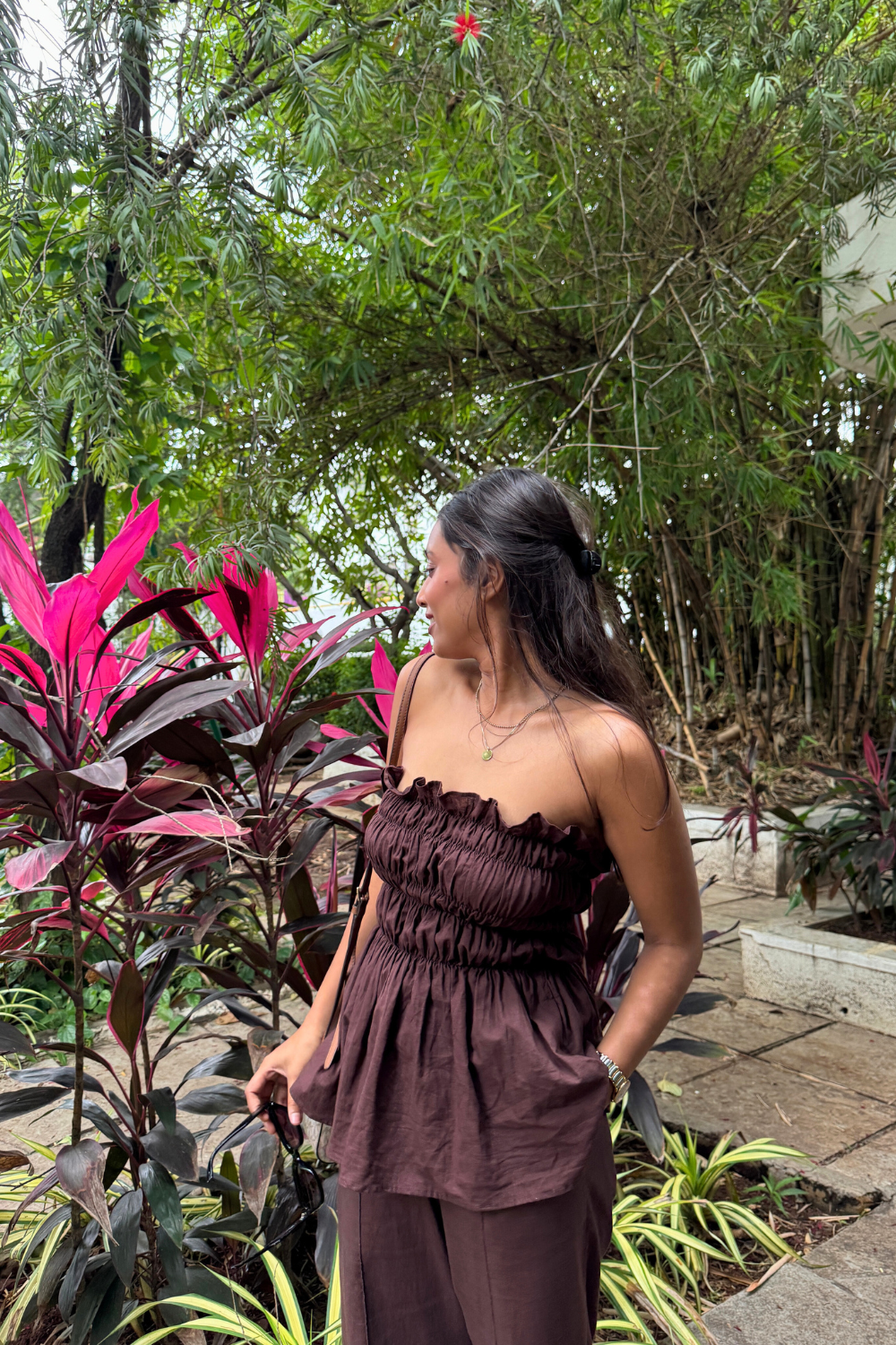 Earthy, elevated, and endlessly wearable. This rich brown Gelato co-ord is your new go-to for days when you want to feel grounded and gorgeous. Featuring our signature ruched tube top and full-length flowy pants with deep pockets, this set blends structure with softness—designed to flatter every body, every day.