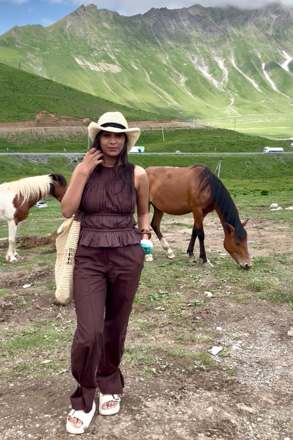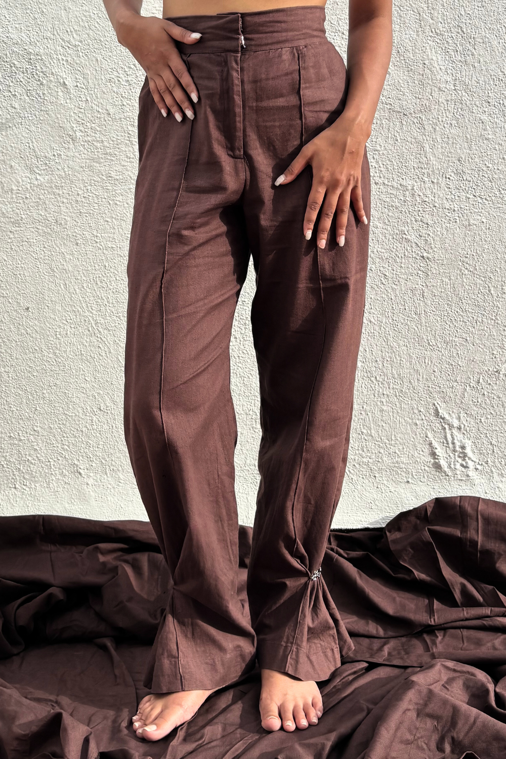 Tailored for ease and edge, the Cocoa Pin-Tuck Pants come in a rich, timeless brown with a clean mid-waist fit. Designed with in-seam side pockets, a wide statement belt, and crisp front pin-tuck lines, they bring structure with just the right softness.